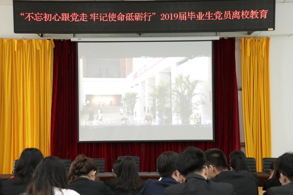 根据毕业生离校日程安排,按照学校2019届毕业生主题教育活动方案整体部署,为教育引导广大毕业生党员牢固树立“四个意识”,坚定“四个自信”,williamhill英国围绕“不忘初心跟党走,牢记使命砥砺行”主题,开展2019届毕业生党员离校教育系列活动。
