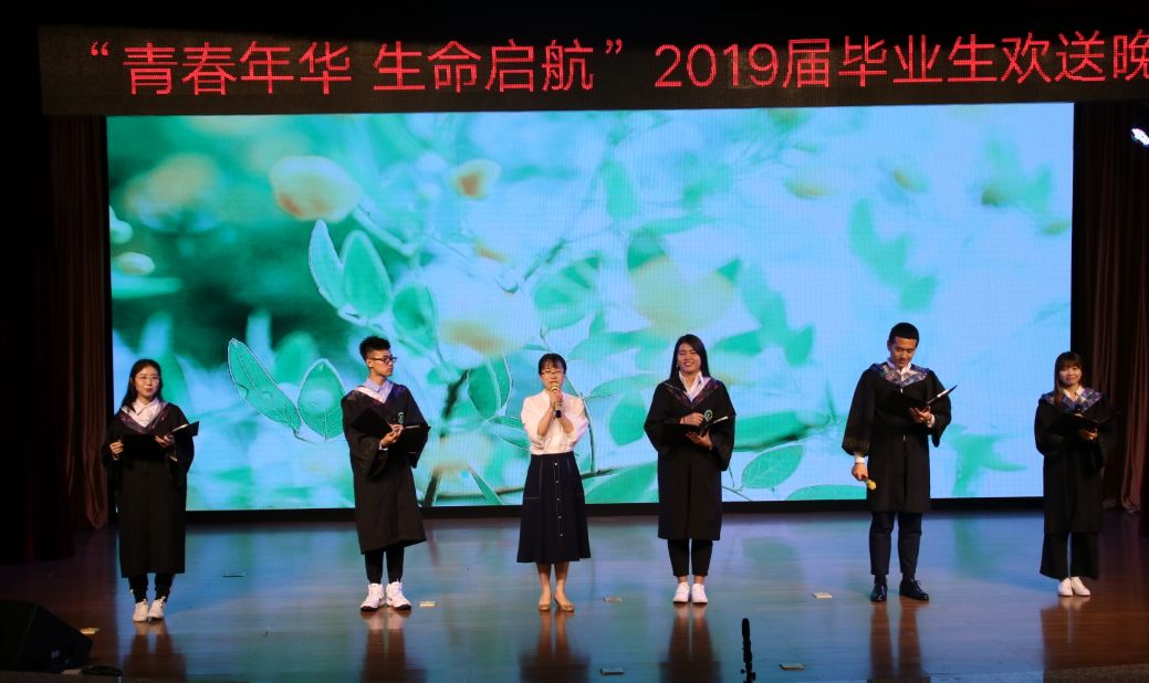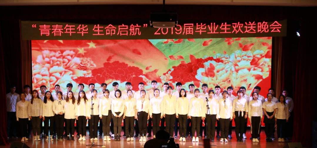 本科毕业班辅导员王梦带来的歌词改编版《小幸运》以及全体辅导员带来的一首《光阴的故事》使现场气氛达到最高峰,让同学们带着微笑和泪水沉浸在大学四年美好的回忆里。毕业生班委代表的原创诗朗诵诉说着毕业生们的四载风华。晚会尾声,由生命青年传媒中心与毕业生历时一个半月联合创作的MV《我的未来不是梦》首播,道出了所有人对2019届全体毕业生最真挚的祝福。伴随着《我和我的祖国》和《祝你一路顺风》的唱响,毕业生晚会圆满落下帷幕。