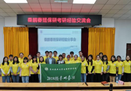 为鼓励班级同学不负使命、志存高远,学院开展了秦鹏春班保研考研经验交流会活动。交流会上,已经开启研究生生涯的2016级秦鹏春班和拟保送国内双一流高校的2017级秦鹏春班同学,为2018级秦鹏春班全体同学传授宝贵经验。秦鹏春班班主任王红梅研究员也结合自身经历,从保送条件、面试技巧等方面进行了详细的介绍,并寄语同学们在今后的道路不仅要从自身发展出发,更要为社会做出自己的贡献,为国家富强和民族复兴而努力奋斗。通过本次分享活动,2018级秦鹏春班同学对自己的学习生活有了更加明确的规划,以优秀学长学姐为榜样,传承并弘扬秦鹏春精神,追求卓越,勇于创新,在前进的路上奋勇向前。
