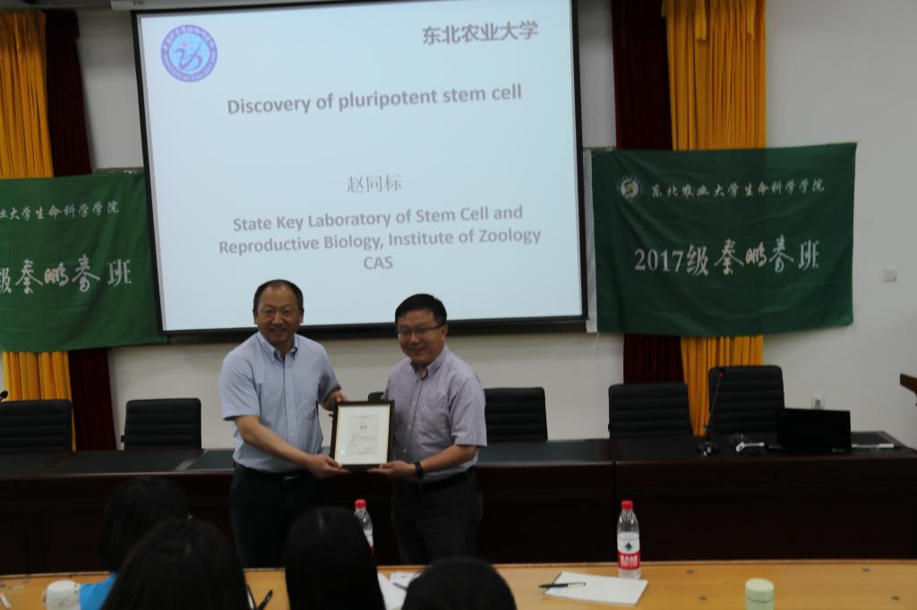 随后,赵同标研究员以《多能干细胞的发现》为题讲授了干细胞研究的发展历程,希望同学们能从中汲取经验养成科学思维和思考习惯。他以讲解干细胞治疗的应用前景、手段和需求为开端,以时间为序介绍了干细胞从发现到分离和应用的进程。赵同标研究员在讲述多能干细胞发展阶段中,提出了畸形瘤如何形成和怎样获得人多能干细胞等问题引导同学们思考,并与赵要风教授一道叙述了几个知名科学家的传奇人生,告诫年轻人要敢想敢做,谨记科学是以爱好和坚持不懈为基础逐步沉淀和突破的过程。