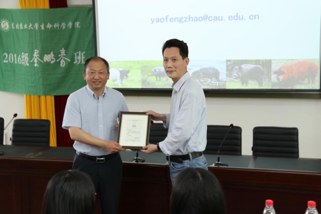 | 学院党委书记施喜军为赵同标教授颁发纪念证书 |