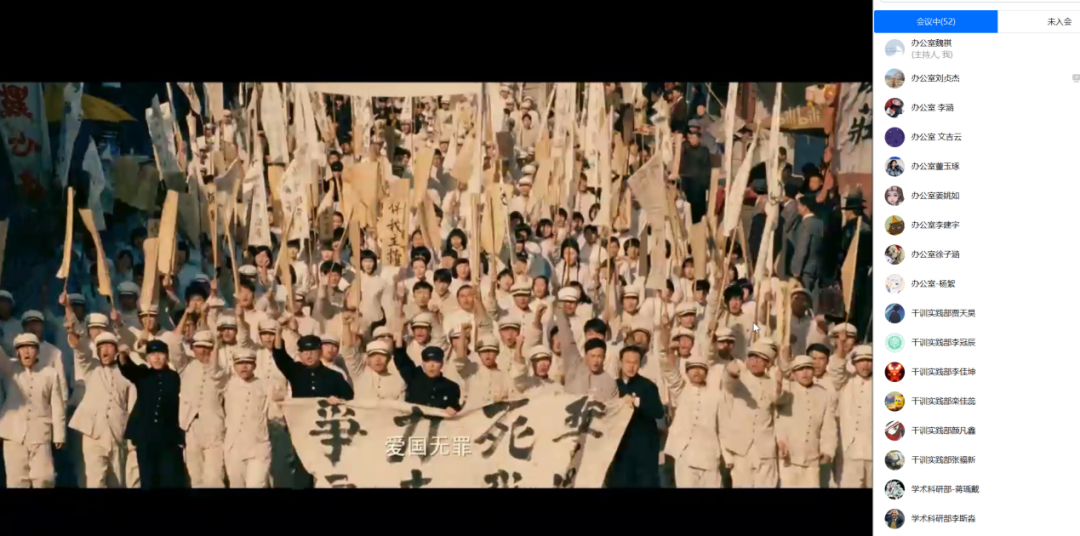 “少年强则国强”,青年一代之于整个民族而言,可谓其为中流砥柱。此次观影之后,我的体会更加深刻。先辈们的满腔热忱给我们教诲,青年人就该做青年人的事,努力学习,为实现伟大的“中国梦”贡献力量。我们是祖国的接班人,也是五四精神的传承者,更是民族复兴重要力量之一,青年的梦想要和“中国梦”紧密联系,不负时代的重托和人民期望。今天,我们通过观影来纪念五四运动104周年,我们不仅要铭记这段历史,更重要的是要继承和弘扬五四精神,使其成为我们在新的历史条件下不断夺取新胜利的强大精神动力,勉励我辈青年为实现中华民族伟大复兴而不懈奋斗。
