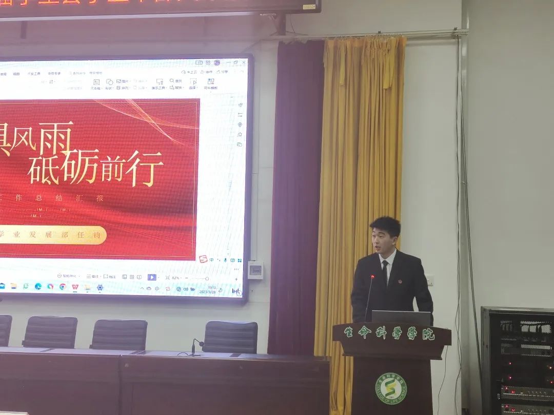 会议最后,学生会秘书长杜壮老师做总结讲话。首先,杜老师向一年来积极工作的学生会全体成员表示肯定。随后,杜老师对学生会成员提出了三点希望:一是要严于律己,加强自我约束,时刻绷紧纪律之弦;二是要增强统筹兼顾能力,提高个人综合素质,权衡好学业与学生工作;三是要踔厉奋发、锐意进取,在日常生活中发挥先锋模范作用。希望全体同学不忘初心、牢记使命,不辜负老师的期望!