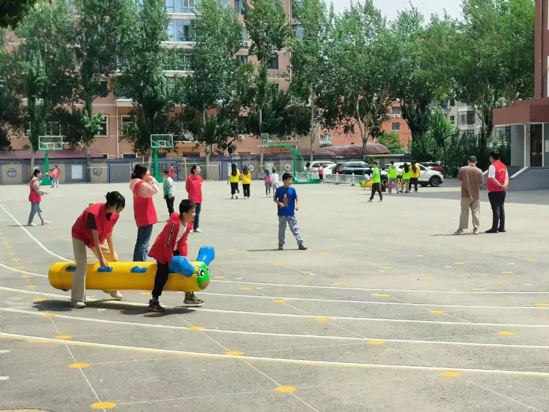 辅导完孩子们的作业后,志愿者和孩子们便跟随学校负责人的引导来到了学校一楼的操场。阳光正好,万里无云,志愿者们和孩子们在灿烂的阳光下运动嬉戏。志愿者们与孩子互相成组,在操场上比赛赛跑。一些孩子还与志愿者们玩起了小游戏,直到时间到了,孩子们才恋恋不舍地离开。