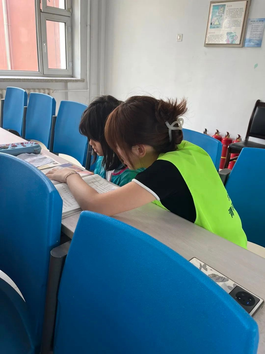 志愿者们耐心地引导着孩子们,或用比喻,或用生动的例子向孩子们讲述问题的解决过程。聪明的孩子们恍然大悟,随即在作业本上刷刷地写下问题的答案。当志愿者们为孩子们辅导作业时,不仅为孩子们提供了专业且形象的指导,帮助他们找到解决问题的方法,也使志愿者自己获得了成就感,让自己的所学付诸社会实践,对自己未来的职业有了一定的认识。