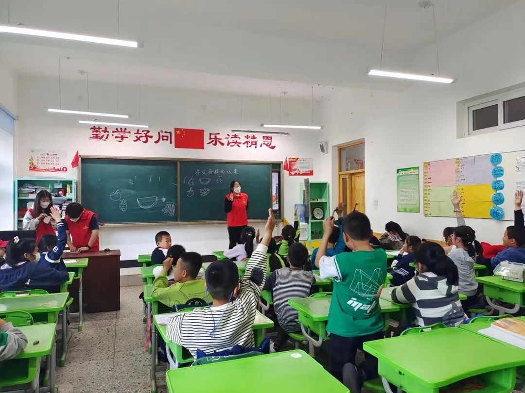 支教过程中,一部分志愿者来到了二年级一班,通过情景演绎的形式为同学们科普了新冠病毒二次感染的原理及防护方法,形象而具有趣味性。此后又带领同学们参与了绘画接力、标本辨识、魔术及歌曲欣赏等活动,大家积极展示、踊跃发言,充分发挥自己的想象力和创造力。在最后的答疑解惑阶段,同学们异想天开,所问所思从宇宙至蜉蝣,从有机到无机,从过去到未来;天马行空恣意飞扬;如果诚如儒贝尔所说“想象是灵魂的眼睛”,那么这些孩子一定拥有一双澄澈的双眼。整个课堂课堂期间充满欢笑与快乐,这既是同学们收获知识的快乐,也是志愿者们实现自我价值的愉悦,是真正意义上的教学相长也。