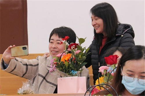 施喜军代表学院向女教工致以节日的问候和诚挚的祝福,对女教工们在过去一年工作中取得的成绩,体现出的爱岗敬业、勇于担当、无私奉献精神,表达了深深敬意和感谢,并鼓励大家继续发扬“巾帼不让须眉”的精神,同心同德,团结一致,不断为学院高质量发展作出重要贡献。