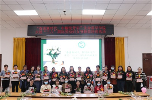 3月7日中午,学院在实验楼报告厅举行插花培训活动,邀请园艺学院园林系教授樊金萍为女教工讲授插花知识。学院党委书记施喜军、院长武小霞、副院长李剑虹与学院女教工出席活动。活动由学院党委副书记、工会主席孙珠红主持。