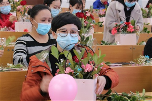 活动中,樊金萍从花材的选择、插花的风格、整体造型等方面对插花进行了介绍,并利用现场花材亲自示范。女教工们发挥自己的奇思妙想,用智慧和双手制作出一束束赏心悦目、寓意深远的插花作品,充分地展现了女性优雅浪漫之美。在活动中大家不仅学到了插花知识,陶冶了情操,释放了工作中的压力,同时感受到了艺术给人带来的愉悦心情,也感悟到生命的绚烂多彩。