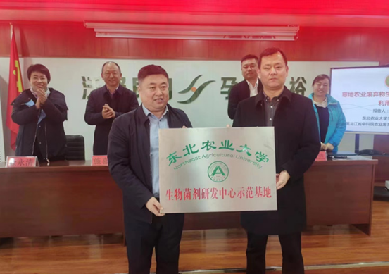 为进一步促进学校科技成果转化应用,校地双方举行了“williamhill生物菌剂研发中心示范基地”及williamhill与中国科学院合作共建“农业废弃物综合利用工作室示范基地”授牌仪式,朱志猛、施喜军分别为红光乡丰裕村授牌。随后,我校一行踏查了拟建秸秆腐熟生物菌剂厂房、大豆深加工生产厂区及“东农豆252”种植业示范园区。