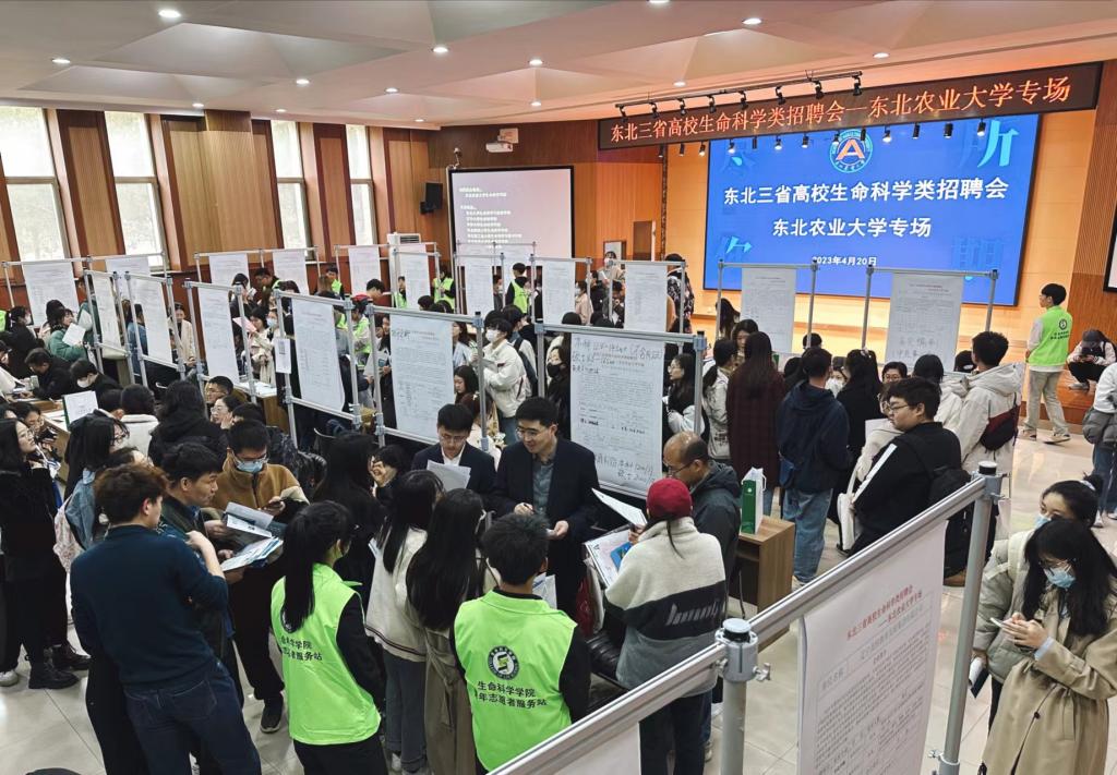 本次招聘会主要面向东北三省八所高校中的生命科学类本、硕、博毕业生,吸引了包括中国水产科学研究院黑龙江水产研究所、上海交通大学医学院附属第九人民医院等事业单位,华大基因、哈药集团、黑龙江金象生化、伊利集团等知名企业,共计56家相关单位参会,提供涉及生物科学、生物技术、生物工程、生物化工、生物医药、生物信息、生物发酵、微生物、遗传学、发育生物学等生命科学领域工作岗位370余个,同时设立专区为毕业生提供简历打印、简历指导等便捷服务。