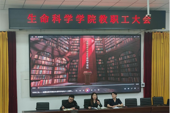 院长武小霞对学院近期承办“第十三届秦鹏春教育基金生命科学论坛”进行全方位总结,希望广大师生进一步传承和弘扬秦鹏春先生的精神,潜心治学、厚植情怀、志存高远、脚踏实地,不负时代、不负青春,为加快推进中国式农业农村现代化、为全面建设社会主义现代化国家、全面推进中华民族伟大复兴而团结奋斗。会后与全体教师观赏本次论坛宣传片“生命之光”。