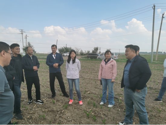 在大庆市龙凤镇刘高手村,调研组实地查看了嗜/耐盐微生物菌剂成果用于盐碱地种植玉米试验示范基地,姜巨全教授介绍了该成果研发以及近几年在省内外试验示范情况;龙凤区农业农村局、龙凤镇有关同志和农户对此项成果前期成效给予了肯定并对未来深入合作表达了强烈意愿。