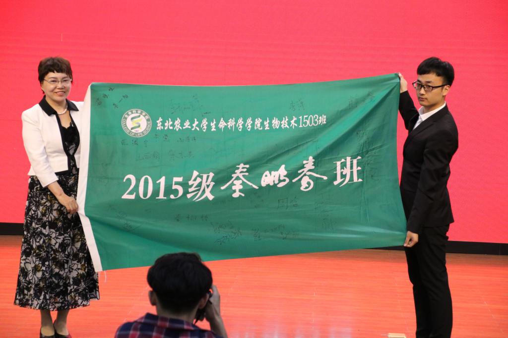 施喜军在主持典礼时向同学们介绍了“秦鹏春教育基金”的成立与发展,希望同学们事业有成之时,以实际行动关心、支持和推动秦鹏春教育基金的发展,让更多的学生受益,共同把秦鹏春教育基金打造成国内知名的品牌基金。同时,他希望毕业生要从过去的学习中汲取前进的力量,永远传承生命学院敢为人先、追求卓越,勇于创新的文化基因;永远弘扬东农精神,始终保持清醒冷静理智的头脑,在人生的关键时刻做出无悔的选择;永远具有家国情怀,做到坚持自我,实现自我,超越自我,不负青春韶华,用努力和拼搏创造更加美好的明天。