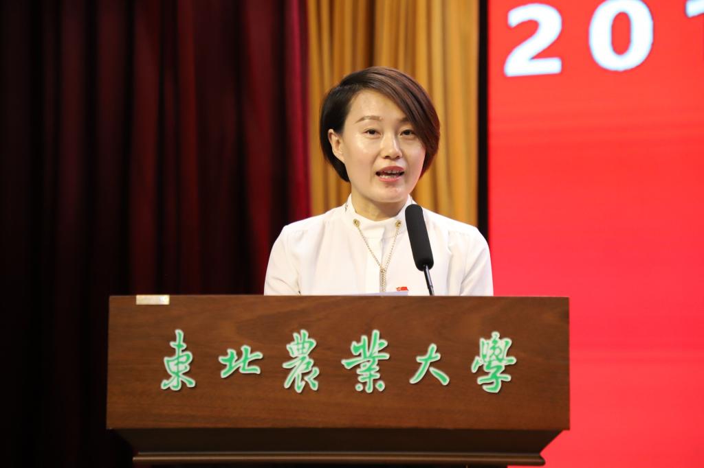 williamhill英国教师代表、生物工程系主任李剑虹教授代表全体教师发言。她说,回首过去几年,你们刻苦学习、努力拼搏,许多生动的细节、精彩的瞬间依然历历在目。你们用勤奋和努力证明了真实的自我,用青春和活力谱写了绚丽的篇章,现在的你们是生命学院的骄傲,东农的骄傲,未来的你们也注定成为祖国的骄傲。同时,她为即将远行的孩子送上殷殷嘱托,要立德修身,完善自我;要敏而好学,超越自我;要志存高远,奉献自我。