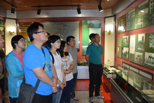 参观过程中,施喜军书记带领支部党员和中心群众一起认真观看、认真学习并相互交流。