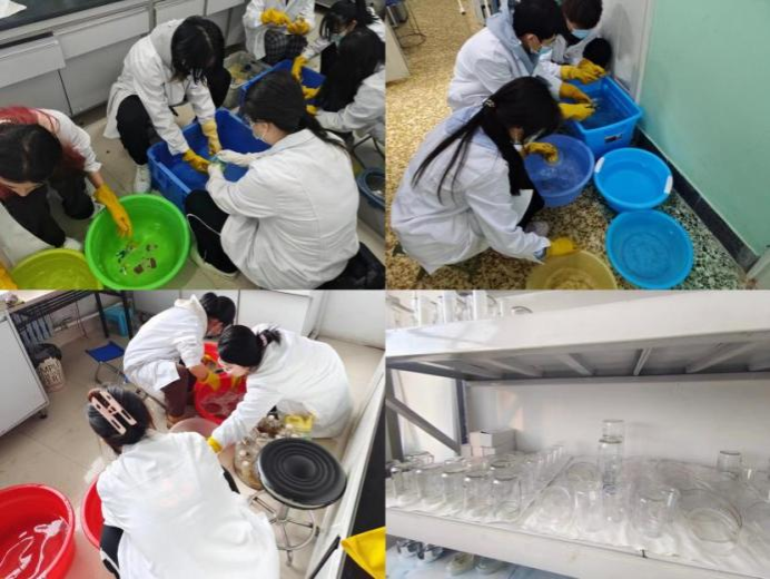 “瓶子亮起来”实验仪器清洗活动:“瓶子亮起来”实验仪器清洗活动本学期共计开展25次,志愿者帮助实验室洗刷实验器皿,减少了实验室科研工作的基础工作量,提高了科研实验效率,用实际行动为相关科研实验工作更好地开展工作默默奉献着自己的力量。