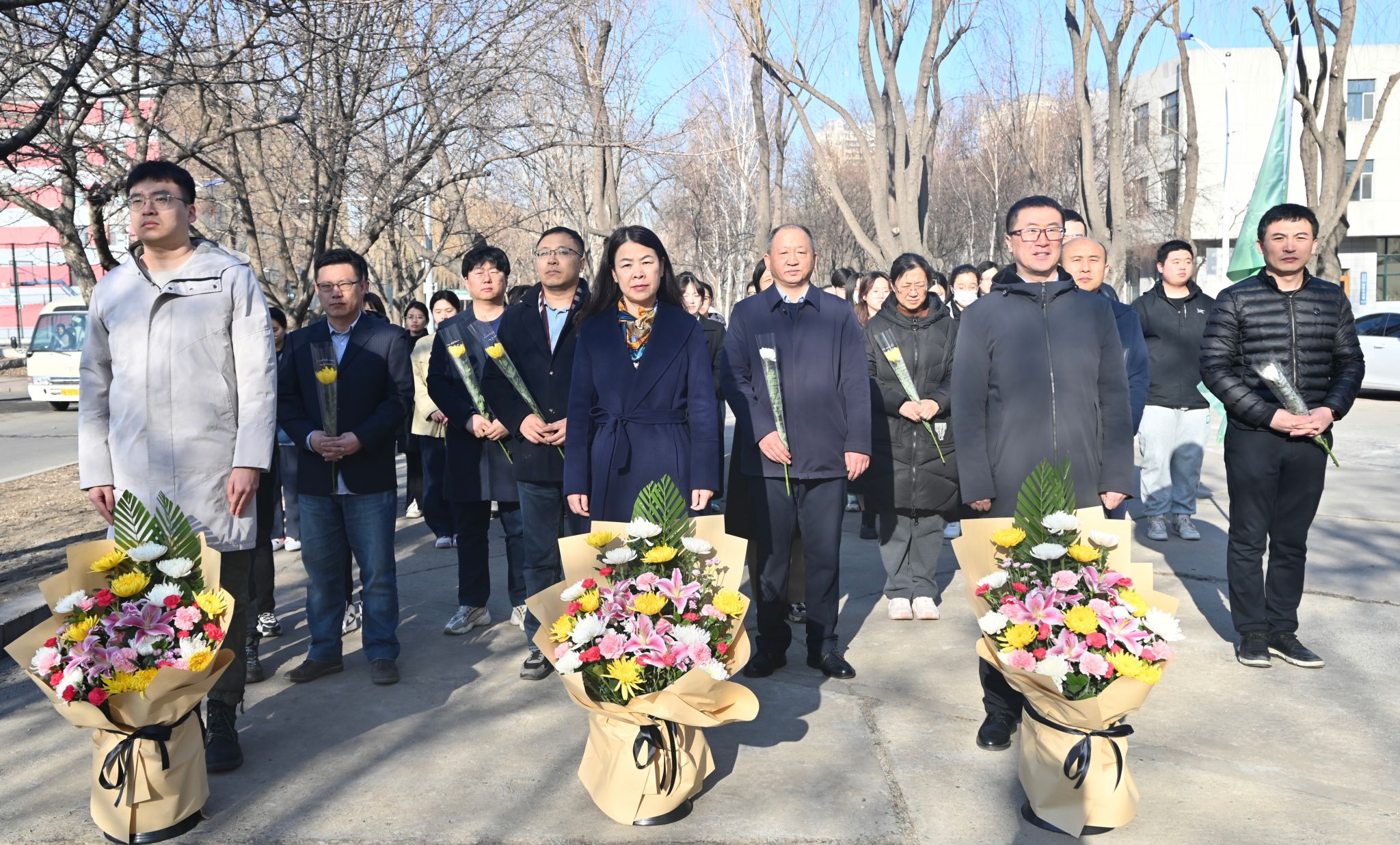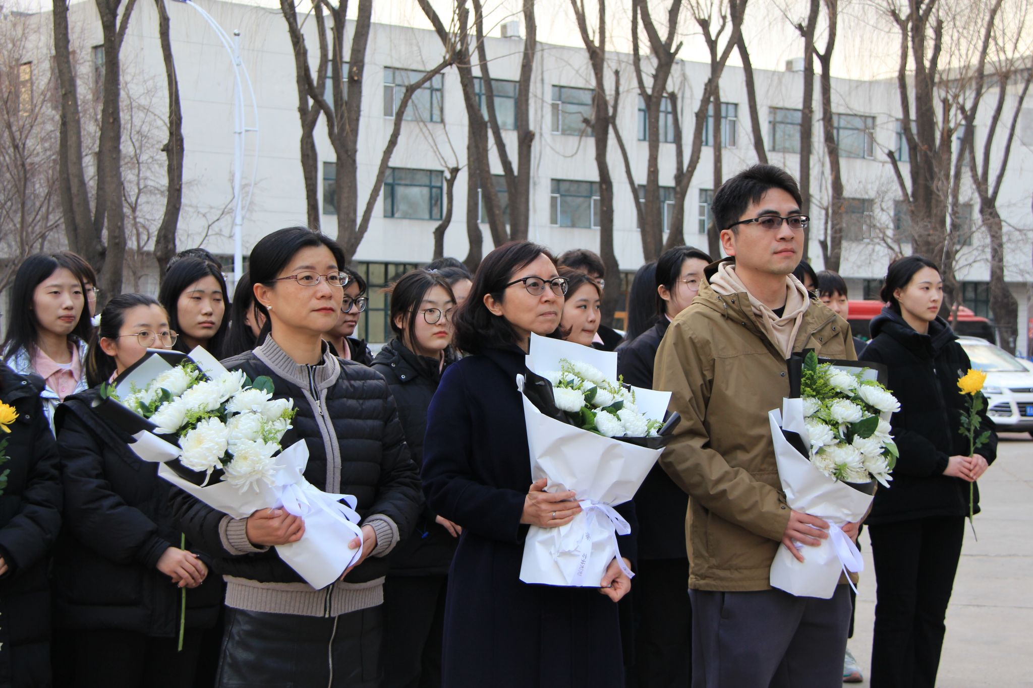 全体师生向秦鹏春先生铜像鞠躬并默哀致敬,随后依次上前敬献鲜花、瞻仰铜像,深切缅怀秦鹏春先生在教研、育人和学科建设等方面作出的卓越贡献。