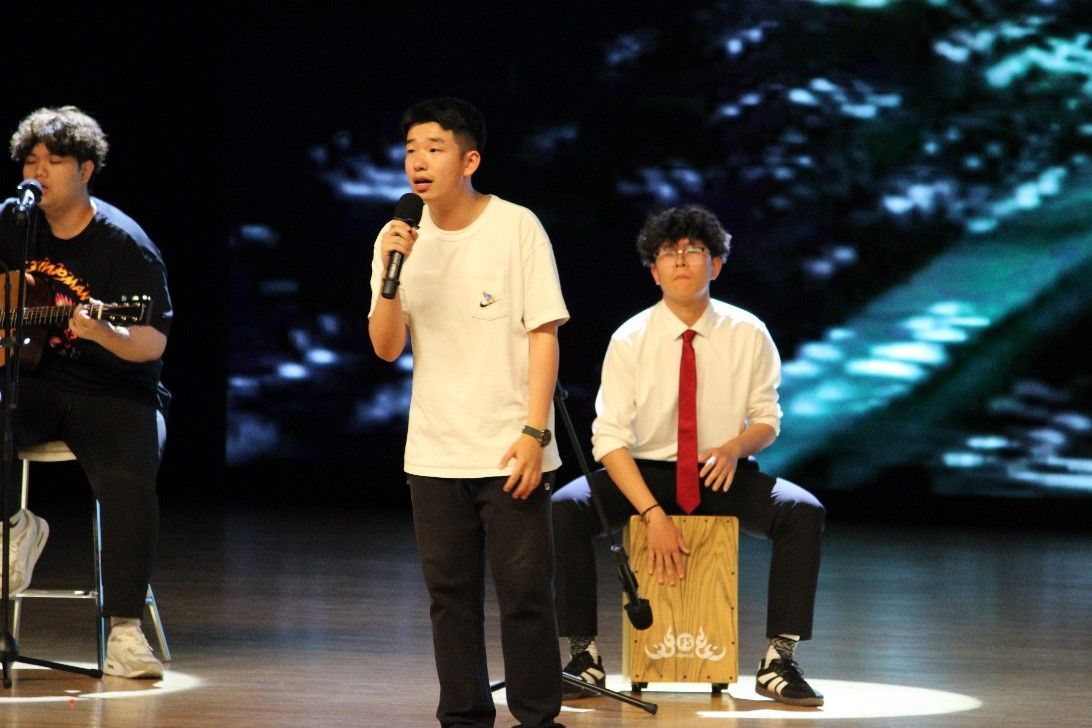 南屏山上的晚钟声,牵动着千里之外的心,校合唱团为即将奔赴山海的毕业生们送上了母校的祝福与惦念。学院舞蹈队用动感舞姿诠释着对未来的无限向往。双宝、吴云舟、纪巍、颜廷胜、胡超五位教师和毕业硕士研究生代表带来的诗朗诵《今朝为别 筑梦起航》,寄托着老师对同学们的深深祝福与殷切期望,莘莘学子在字里行间述说着对母校和恩师的感激与不舍之情。旋律响起,梦想的风帆再次起航,毕业班辅导员韩宗伯与毕业生代表用《送你一朵小红花》传递温暖与希望,道出了师生间的浓浓情意。