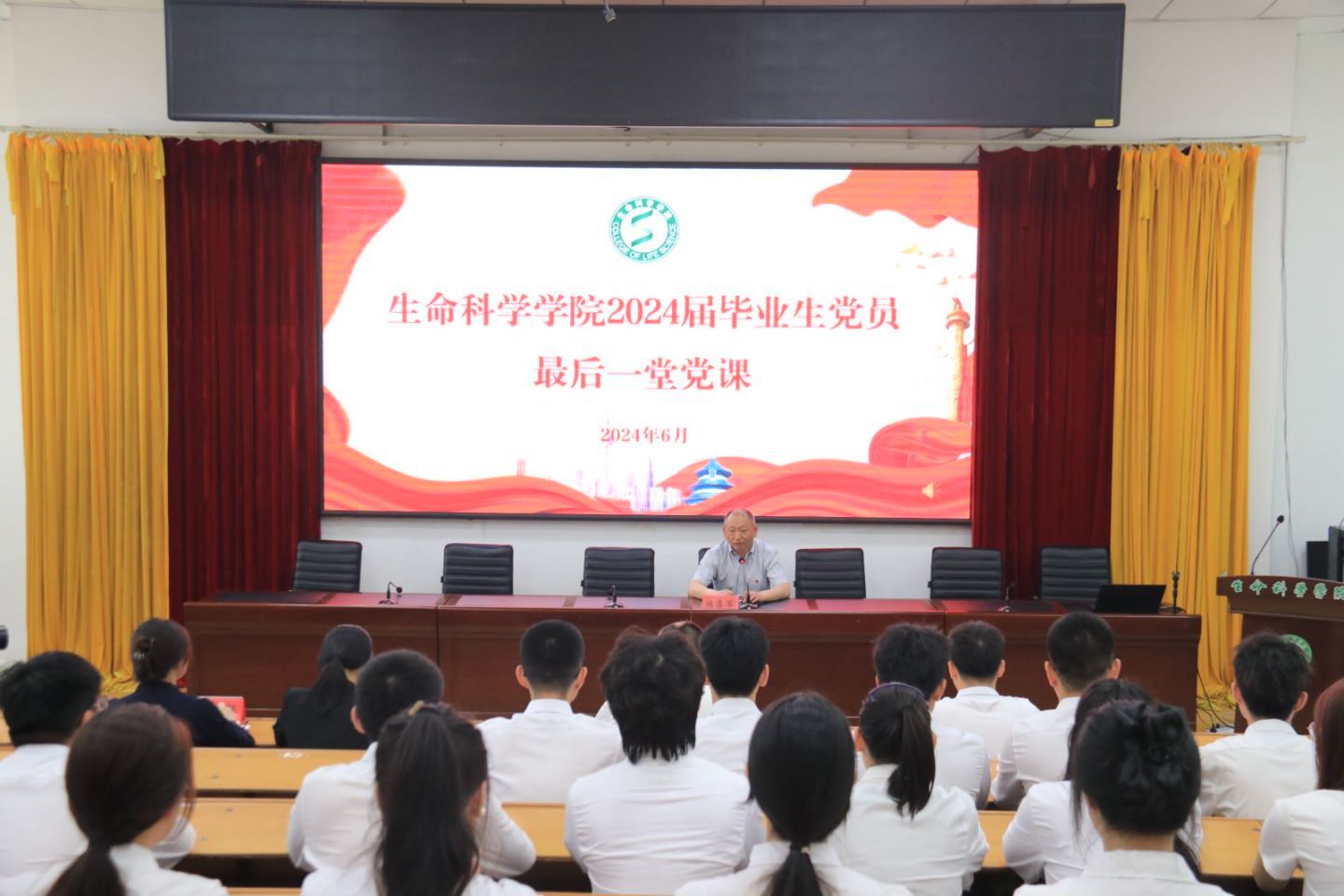 为进一步加强毕业生党员教育,引导毕业生党员在学思践悟中坚定理想信念,在实干担当中锤炼党性修养,6月19日,我院开展毕业生党员离校教育工作——毕业生党员最后一堂党课。学院副处级辅导员胡超带领全体党员重温入党誓词,学院党委副书记孙珠红宣读党员离校提示卡,提示全体毕业生党员时刻牢记自己的政治生日和政治身份,以身作则,争做先锋。学院党委书记施喜军为全体毕业生党员上了一堂生动的党课。施喜军强调,生命学子要始终牢记自己的党员身份,继承和发扬党的优良传统和作风,遵规守纪,言行一致,以饱满的热情、坚定的信念以及感恩之心投身到党和人民的事业发展中去,用实际行动回报家庭、回报母校、回报社会,为全面推进中国式现代化作出新的更大的贡献。