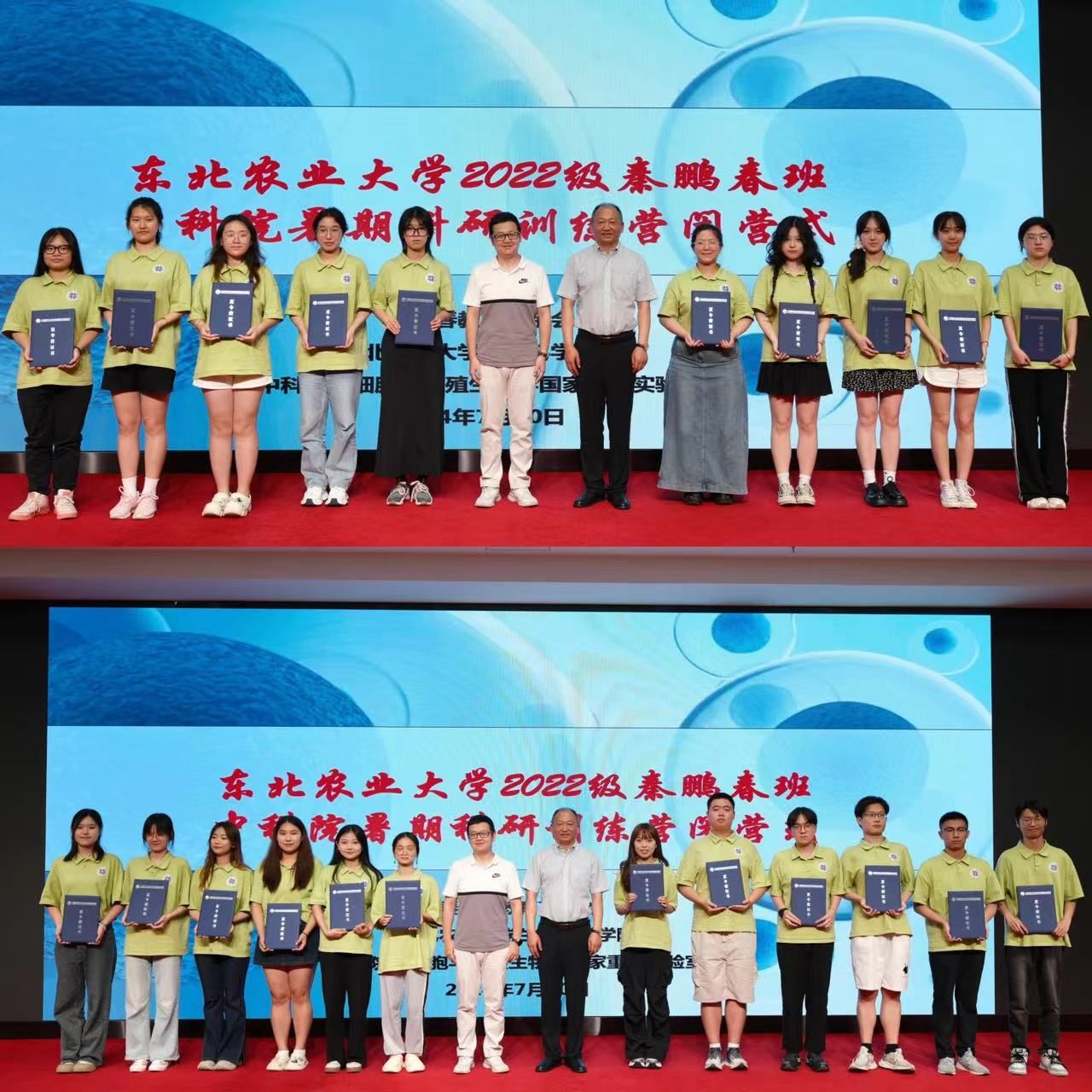 随后,刘忠华致辞,他代表学校向中国科学院动物研究所长期以来在我校人才培养、科学研究等方面给予的大力支持表示衷心的感谢,向为本次活动精心筹备、周密组织、辛勤工作、无私奉献的王红梅研究员以及器官再生与智造重点实验室的各位老师和指导组的同学表示诚挚的谢意,向2022级秦鹏春班学生顺利圆满完成科研训练任务表示由衷的祝贺。他表示,党的二十届三中全会审议通过的《中共中央关于进一步全面深化改革、推进中国式现代化的决定》中强调要优化高等教育布局,着眼拔尖创新人才培养,建立科技发展、国家战略需求牵引的学科调整机制和人才培养模式。“秦鹏春拔尖人才培养实验班”于2017年组建,是我校拔尖创新人才培养模式的开创性尝试,旨在培养一批传承秦鹏春先生精神,理想信念坚定,家国情怀浓厚的在未来服务国家重大需求的拔尖创新人才,班级的成立和建设紧跟时代需求、国家需要。他向秦鹏春班的同学们提出了三点希望:一是勤于学习,善于思考,做勤于学善于思敏于行的东农骄子;二是明确目标,树立榜样,做高水平科技自立自强的排头兵;三是以身示范,照亮他人,做传承弘扬科学家精神的不熄火种。