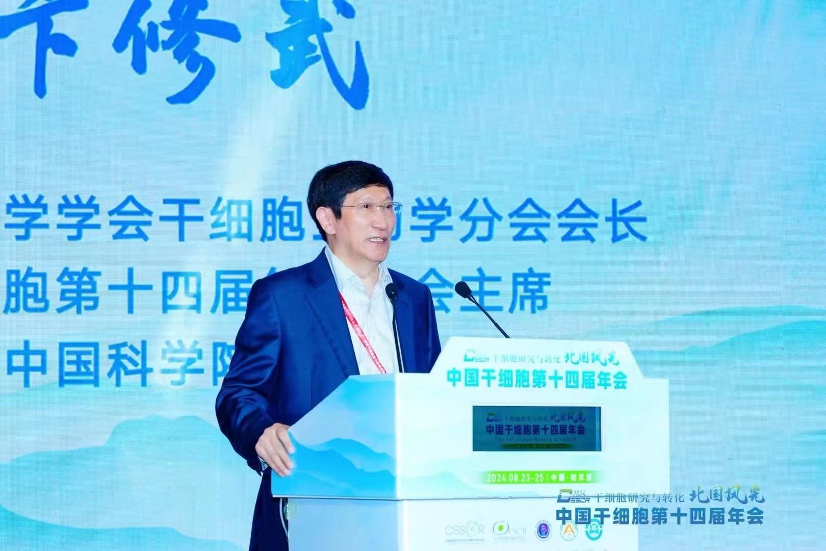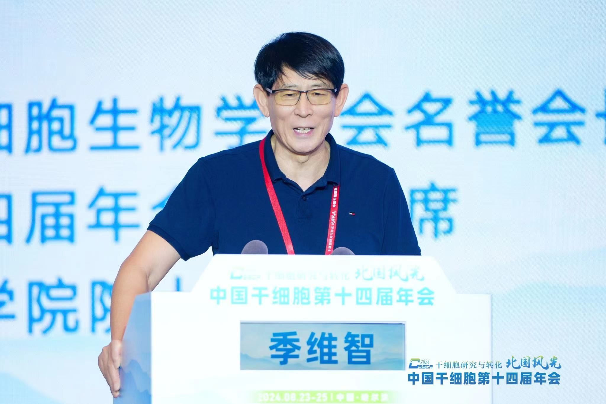 随后,中国细胞生物学学会干细胞生物学分会名誉会长、大会名誉主席周琪院士向本次大会的圆满召开表示祝贺并致辞。周琪强调与会同志们要面向未来,深刻思考干细胞领域如何实现需求导向,应用驱动的原始创新,实现重大技术突破,打造高标准、高质量,用得上、靠得住的干细胞药物!周琪希望中国干细胞年会历经十四届的发展,不忘初心,全体成员能够带着共同的责任,秉持共同的价值观迎接干细胞领域面向转化应用的重要历史阶段!期盼更多的新老朋友,2025年重庆再相聚!