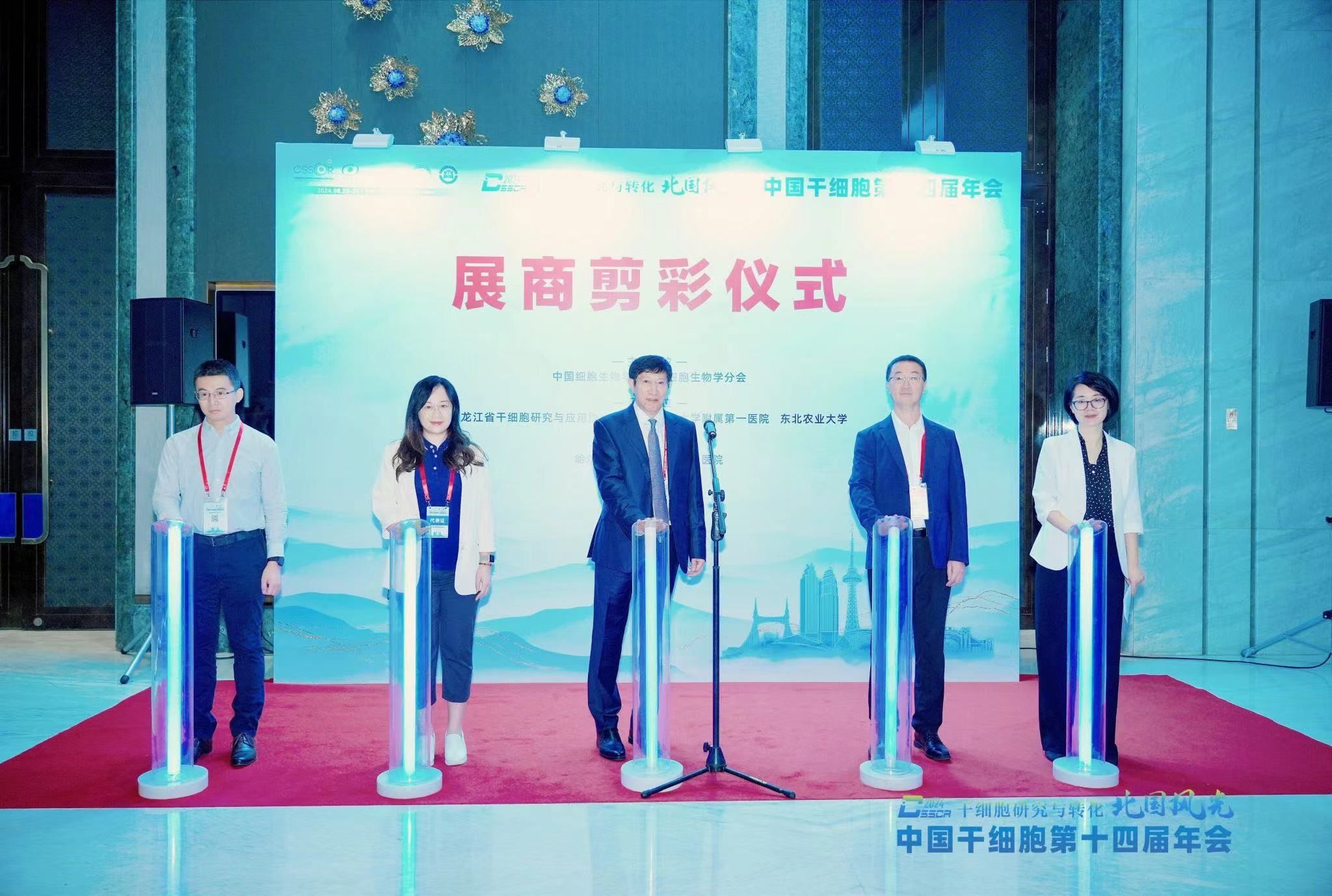 8月23日上午,展商剪彩仪式为本届年会拉开了序幕。williamhill副校长刘忠华教授与中国细胞生物学学会干细胞生物学分会会长卞修武院士、哈尔滨医科大学附属第一医院副院长潘爽以及展商代表共同剪彩,热烈欢迎并感谢全国各地的企业对干细胞年会多年的支持与积极参与。