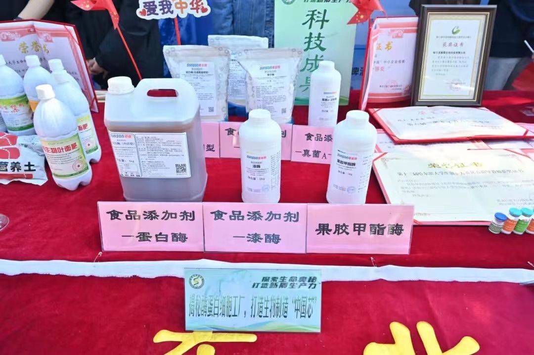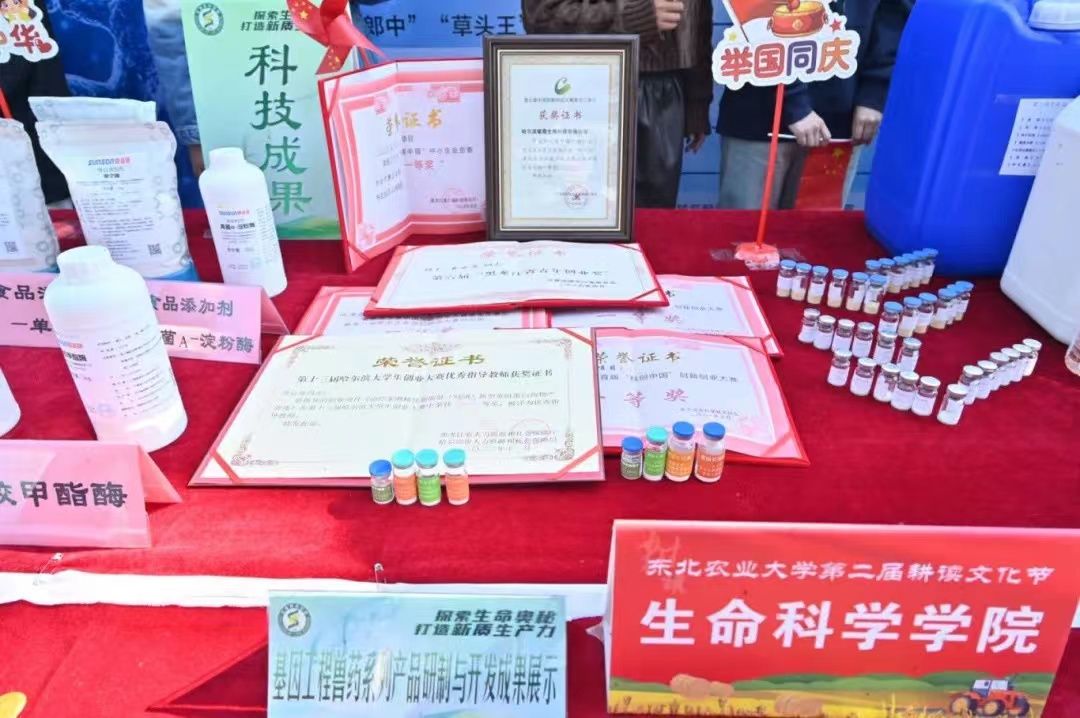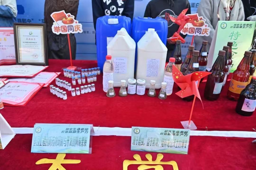 “科技成果”展示区由基因工程创新药物研制与开发团队成果、基因工程兽药系列产品研制与开发成果、基因工程兽药系列产品研制与开发成果、寒地农业废弃物资源化利用及在有机稻米生产中的应用相关展品和黑土再生液、黑土再生颗粒等内容组成,重点展示当前我院在深化社会服务、科技成果转化等领域取得的成果,现场引得众多科研人员驻足交流、讨论。