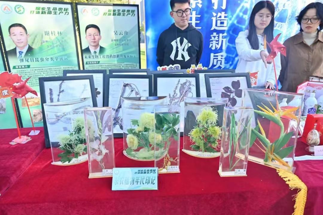 学院以“探索生命奥秘,打造新质生产力”为布展主题,设置了“生命印记”“特色食品”“科技成果”“文创作品”四个展示区。