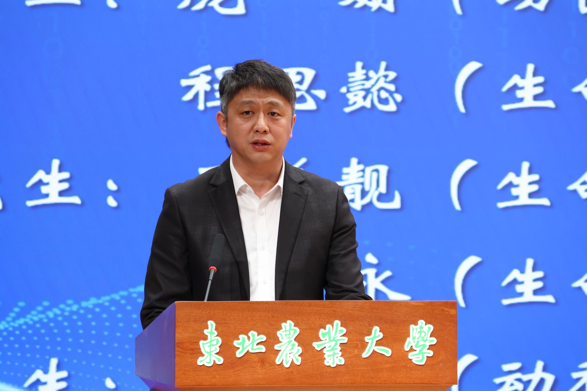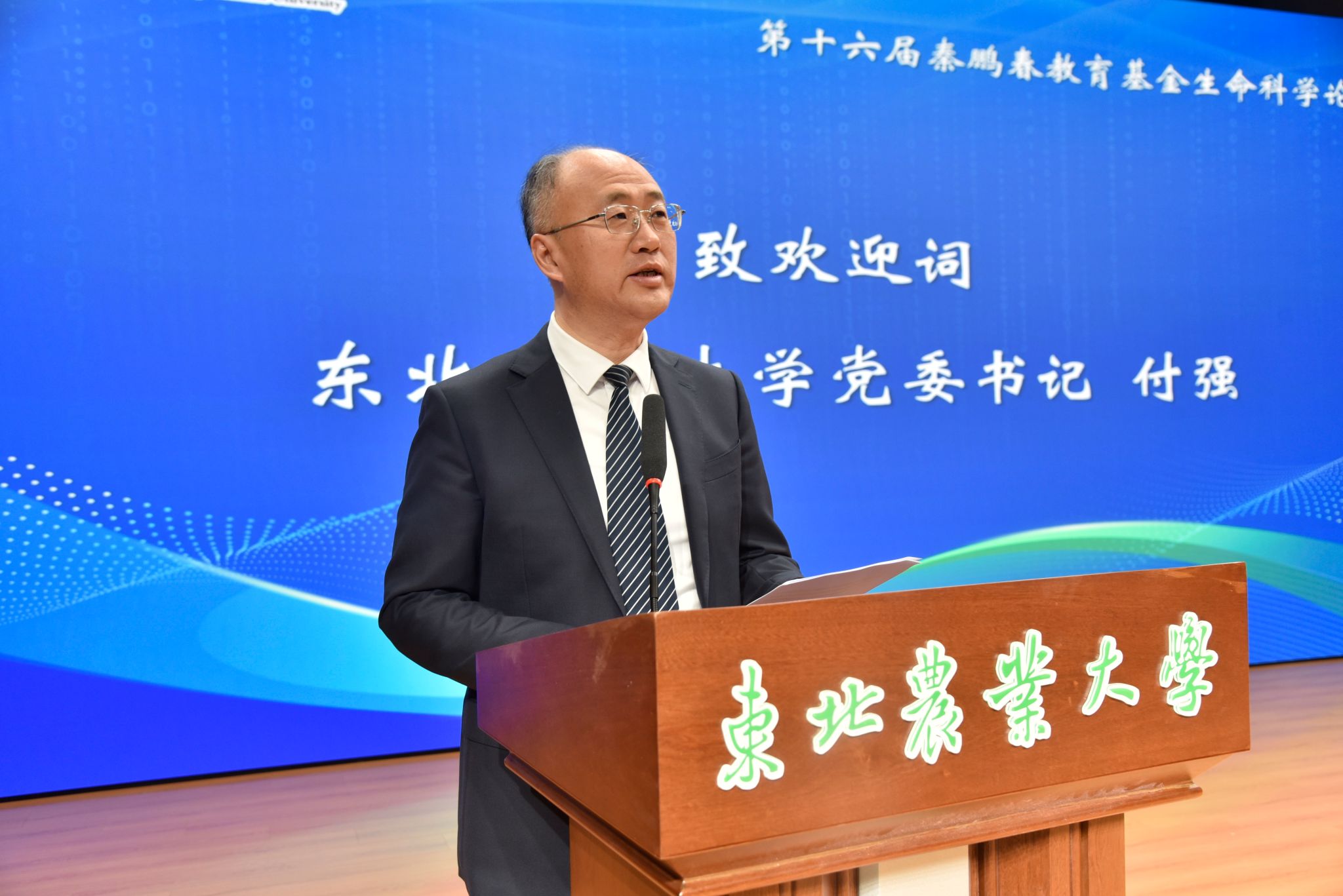 付强代表学校致欢迎辞,他对莅临论坛的各位嘉宾和校友表示热烈欢迎,对荣获秦鹏春教育基金科研创新奖学金和被遴选为秦鹏春班的学生表示衷心祝贺,对一直以来关心和支持东农发展的各界人士致以崇高敬意。他指出,秦鹏春先生作为我国著名动物组织胚胎学家、农业教育家,毕生致力于科学探索,培养了一大批活跃在国内外生命科学研究领域前沿的优秀创新人才,为我校赢得了培养世界胚胎工程精英摇篮的美誉,为学校生物学科发展和世界胚胎学研究作出了突出贡献。在这种精神力量的激励和影响下,秦鹏春教育基金生命科学论坛已成为一年一度生命科学领域的学术盛宴,基金设立的科研创新奖学金、资助组建的秦鹏春班已经储备培养了一批兼具科研素养与开拓精神的新锐力量,赓续了先生的教育理念、传承了先生的崇高精神,为学校奋力实现世界一流大学“东农梦”奠定了坚实基础。付强表示,希望广大师生珍惜学习交流机会,了解前沿科学知识、开阔学术视野,进一步传承和弘扬秦鹏春先生的崇高精神,恪守报国初心,锚定第四次党代会擘画的发展蓝图,刻苦学习钻研,不断成长进步,在推进强国建设、民族复兴伟业中挺膺担当、不懈奋斗。