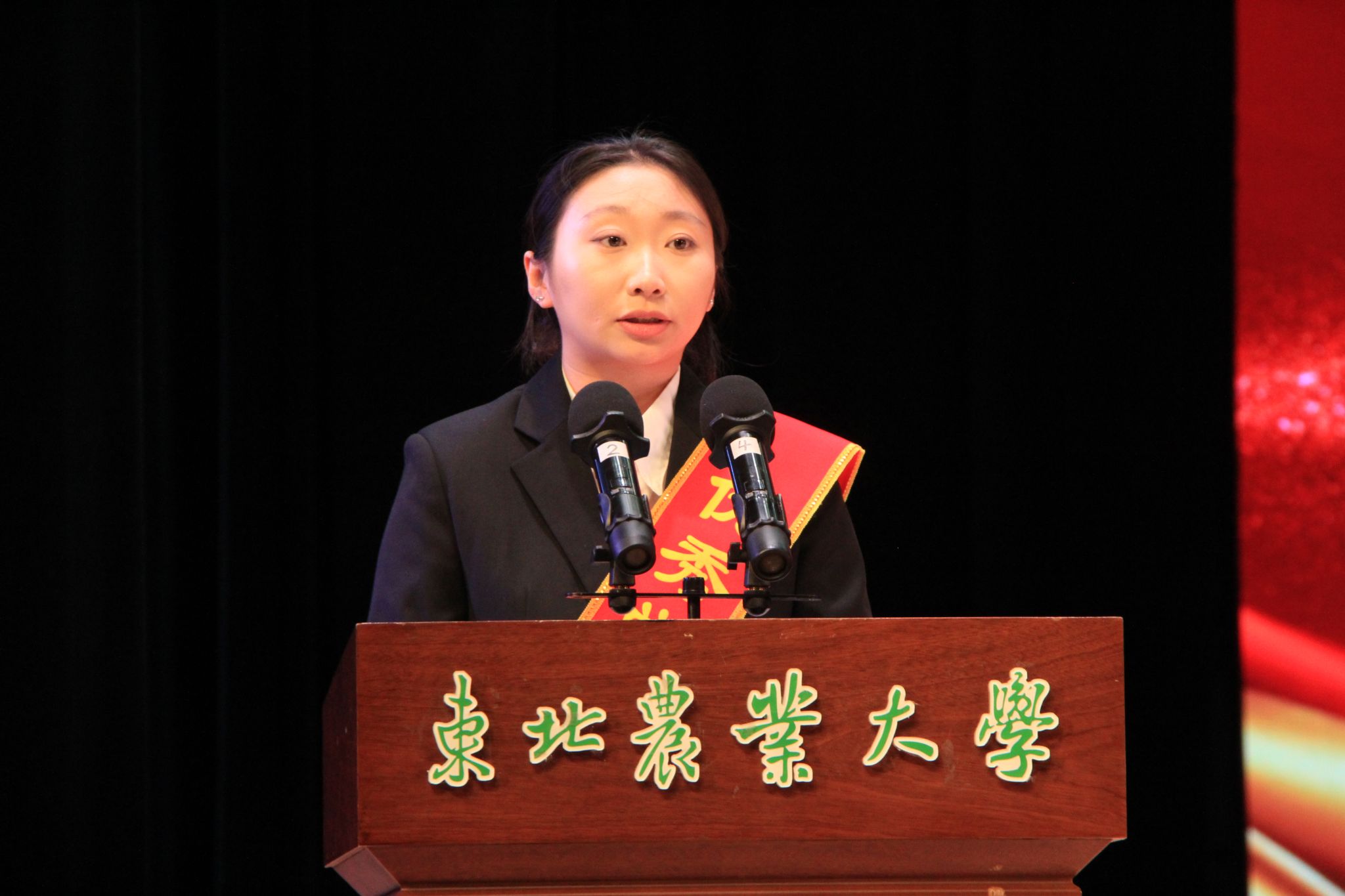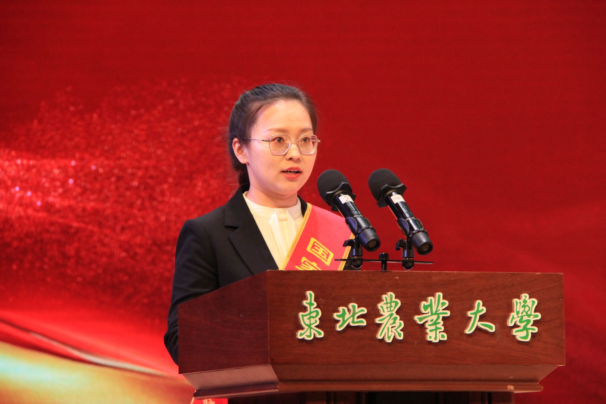 随后,国家奖学金获奖代表、博士研究生刘媛媛,国家励志奖学金获奖代表、本科生宫蕊依次发言。她们分享了在科研道路上的成长与感悟,并结合个人成长经历,号召在场学生在求学路上要树立远大理想,坚定目标信心,努力成长为国家所需的新时代生命学人。
