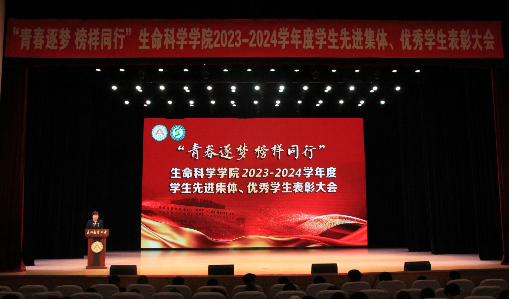 学院党委书记李卡对受到表彰的先进集体和优秀个人表示祝贺,对给予学院大力支持帮助的学校职能部门和为学生成长成才辛勤付出的全体老师表示感谢。他表示,今年是学校召开第四次党代会的开局之年,学院作为世界一流学科建设支撑学院、黑龙江省首批生物学高水平培养基地建设学院,机遇与挑战并存,责任与使命同在。他向同学们提出三点希望,一是志存高远,练就过硬本领。担负起时代赋予的光荣使命,勤奋学习,增长才干,锤炼品格,不断提升能力与本领,奋力书写壮丽的人生华章。二是明德修身,打亮生命底色。传承和弘扬以秦鹏春先生为代表的科学家精神,将“勇于创新、追求卓越”的强大基因嵌入细胞,向优秀榜样学习,不怕困难,超越自我,让青春在不懈奋斗中绽放绚丽之花。三是敢于担当,厚植家国情怀。坚定理想信念,厚植家国情怀,练就过硬本领,发扬奋斗精神。以一往无前的奋斗姿态,将个人成长与国家和民族的命运融为一体,不负年华,不负时代,做中华民族伟大复兴的追梦者、圆梦人。