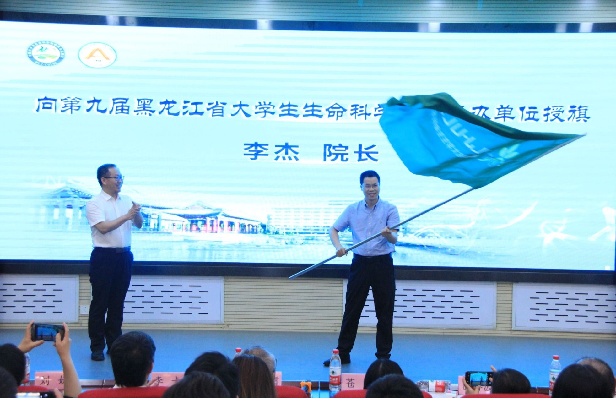 苍晶宣布第九届黑龙江省大学生生命科学竞赛承办单位,李杰向黑龙江八一农垦大学williamhill英国院长晏磊授旗。晏磊在致辞中对我校为本届赛事提供的周密安排和细致服务表示最诚挚敬意和衷心感谢。他表示,本届赛事是一场思想的交锋、学术的盛宴,新一届赛事承办单位一定将这份承载着龙江生命科学教育事业的火炬传递下去。